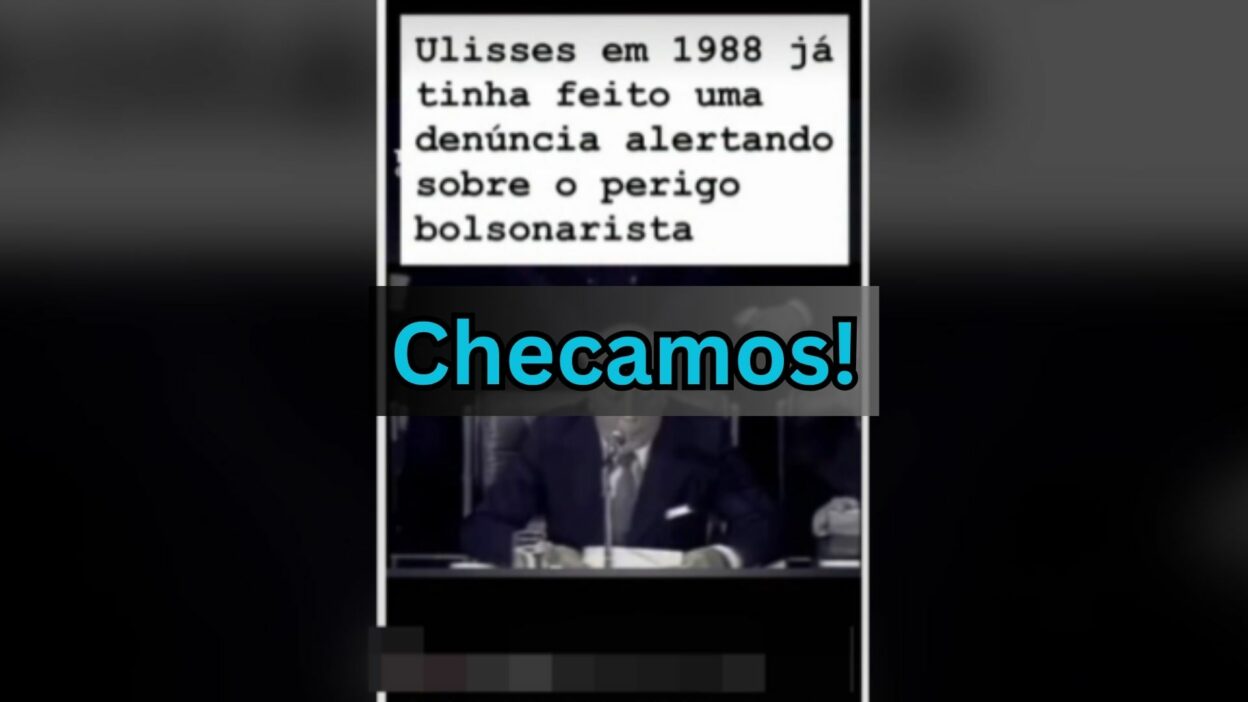 O vídeo que mostra Ulysses Guimarães fazendo uma denúncia contra Jair Bolsonaro em 1988 é manipulado. Trata-se de um deepfake que utiliza imagens reais de um discurso histórico, mas com áudio modificado para criar uma narrativa falsa. Além disso, o contexto apresentado não é historicamente sustentável.