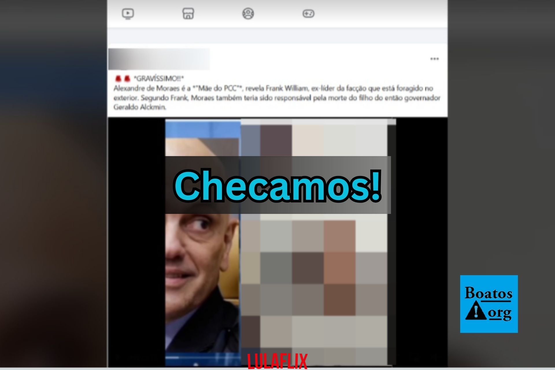 Com um tom sensacionalista, o autor do vídeo afirma que “Alexandre de Moraes é a mãe do PCC” e que o ministro estaria envolvido diretamente na morte de Thomaz Alckmin. Leia abaixo um trecho do boato: