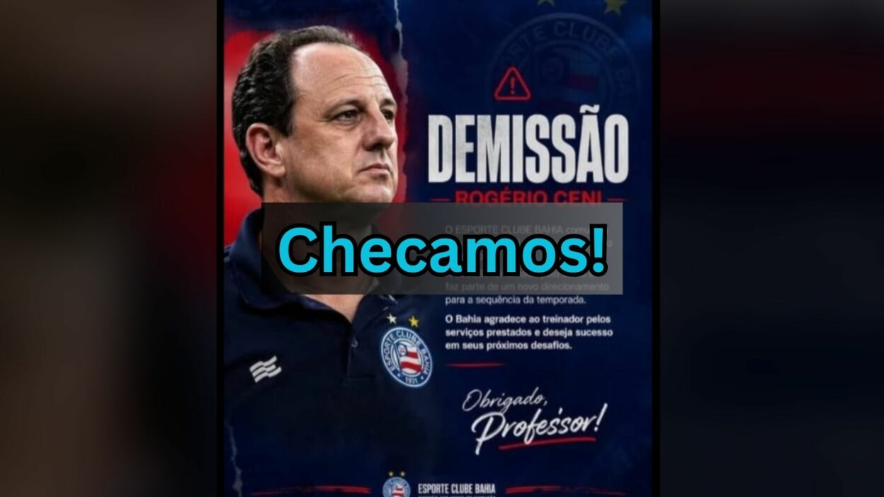 A mensagem que aponta a demissão de Rogério Ceni do Bahia não é verdadeira. Não houve anúncio oficial do clube, e o treinador segue no cargo, ainda que sob pressão por resultados. O caso segue um padrão comum de desinformação no futebol, em que conteúdos falsos se aproveitam de momentos de crise para ganhar alcance.