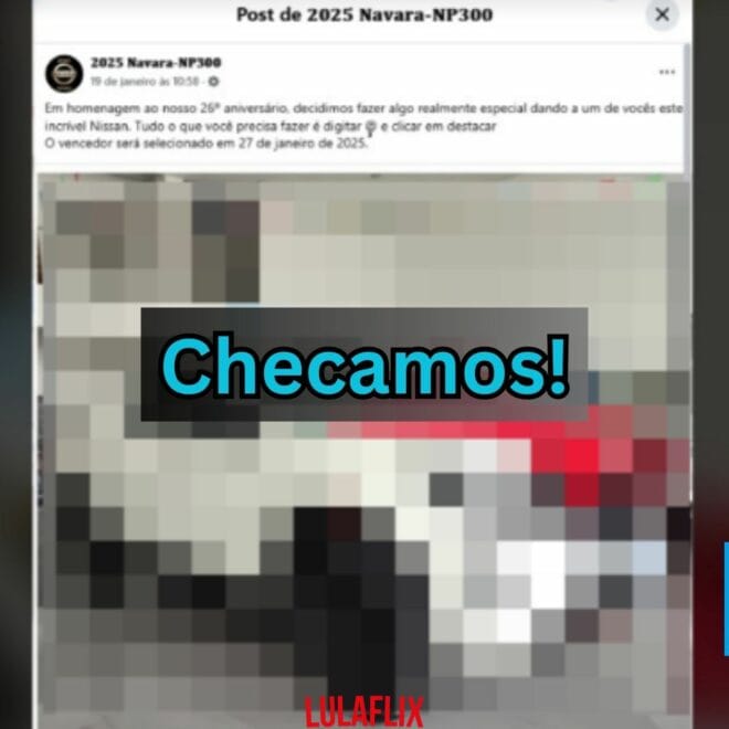 O post que circula nas redes sociais alegando que a Nissan está sorteando um carro para quem comentar “destacar” é falso. Trata-se de mais um golpe comum nas plataformas digitais que busca enganar os usuários para roubar seus dados ou contas.