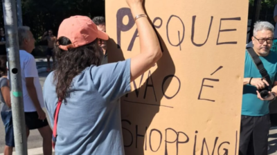 2 Min Read LulaFlixon27/04/2026 “Parque não é shopping”: paulistanos se manifestam contra restaurantes gourmets em áreas públicas Manifestação contra privatizações de parques em SP. Foto: reprodução… Governo Lula
