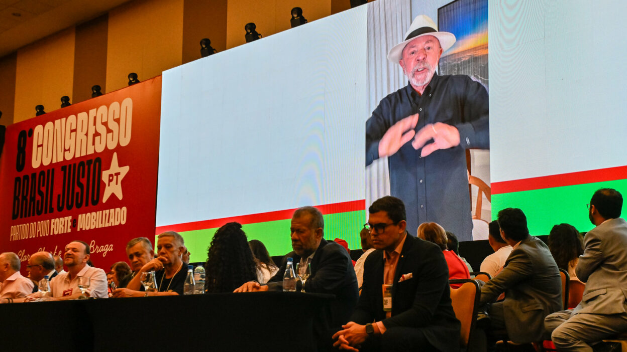 No encerramento do primeiro dia do 8º Congresso Nacional do Partido dos Trabalhadores, realizado nesta sexta-feira, 24, em Brasília, o presidente Luiz Inácio Lula da Silva transmitiu uma mensagem contundente aos cerca de 600 delegados reunidos. Impedido de comparecer pessoalmente por causa de um procedimento médico em São Paulo, Lula gravou um vídeo exibido à plenária ao final das atividades e encerrou com uma promessa: “Preparem-se, pois serei presidente outra vez porque o Brasil precisa de alguém democrático, que saiba ouvir e conversar com o coração das pessoas.”