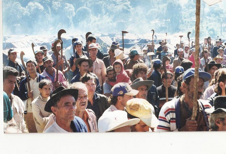 A extensa Fazenda Giacometti Marodin, chamada Araupel, que plantava florestas sem vida para crescer, ser cortada e virar papel, deixava grandes espaços cercados e marcados pela proibição para gentes, plantas e bichos, que mantinha em ordem seus papéis falsos ou verdadeiros, mas dentro, mais ou menos, das leis de propriedade, foi ocupada em abril de 1996 por crianças, mulheres e homens que, sem terra, não tinha onde plantar um pé de couve, nem uma mandioca, nem manter um frango para os dias de festa e, como direito tinham apenas a vida e as leis que dizem que a vida é um direito.