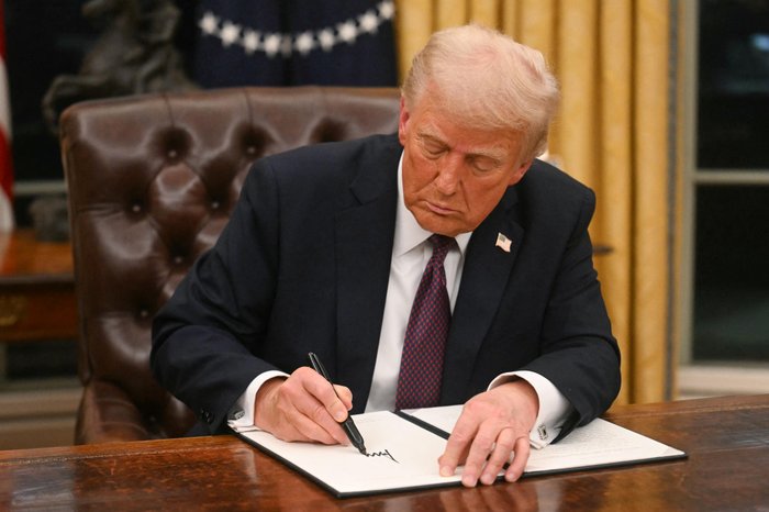 Donald Trump assina decretos na Casa Branca. Foto: Jim Watson/AFP
