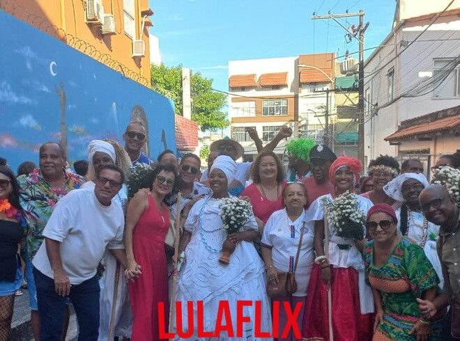 Como não poderia ser diferente, um cortejo de baianas conduziu a festa com flores e água de cheiro. Elas foram acompanhadas por uma banda de fanfarra e o nano trio Dudendê, que deram o tom da alegria para sindicalistas, assessores das entidades e populares da rua, que acompanharam o desfile.