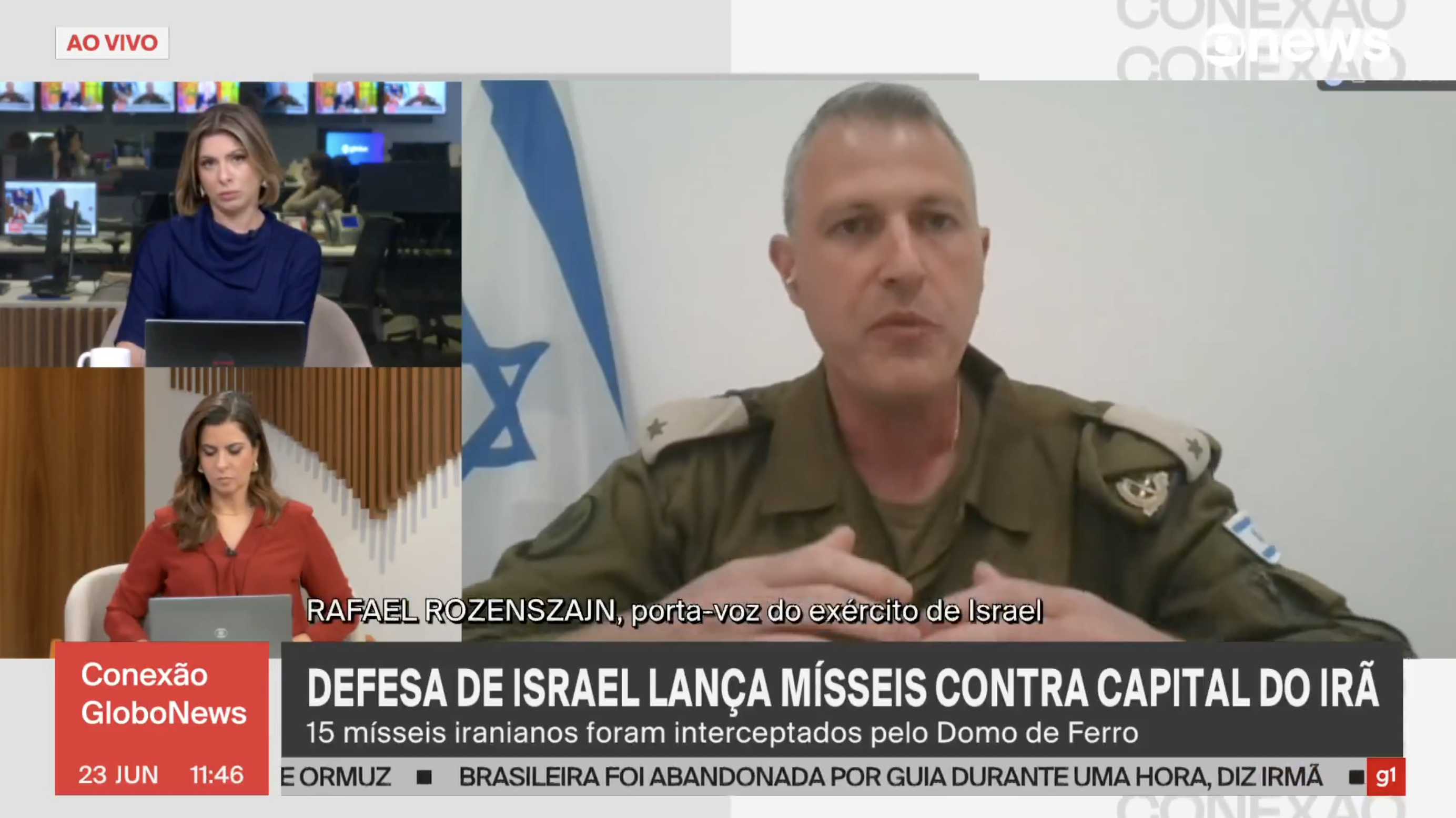 Na segunda-feira (23), a GloboNews deu destaque a uma entrevista com Rafael Rozenszajn, porta-voz do Exército de Israel. Nascido no Brasil, Rozenszajn foi entrevistado por meia hora pelas jornalistas Daniela Lima e Camila Bonfim no programa “Em Pauta”. Propaganda pura, com cenas constrangedoras de submissão das colegas.